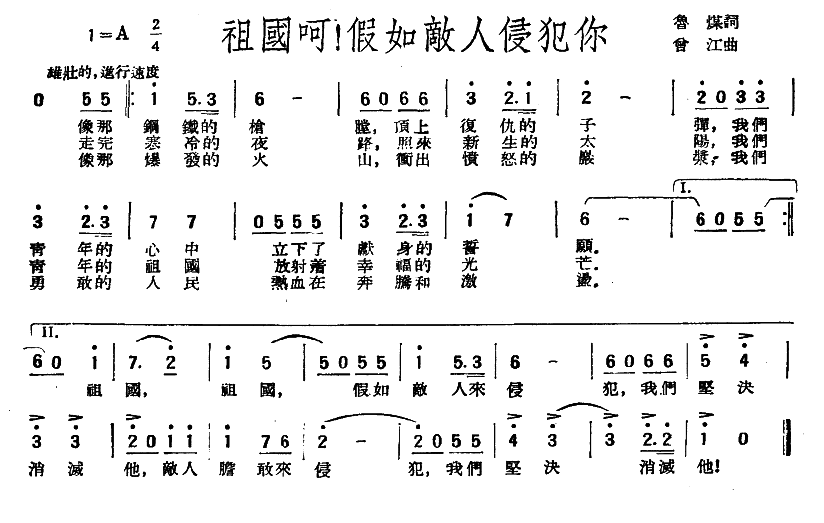 祖国呵 假如敌人侵犯你