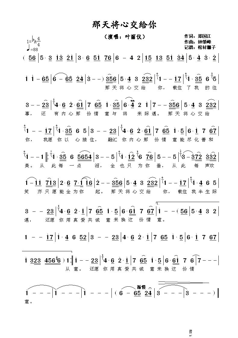 - [歌谱] 笑傲江湖 叶振棠 叶丽仪