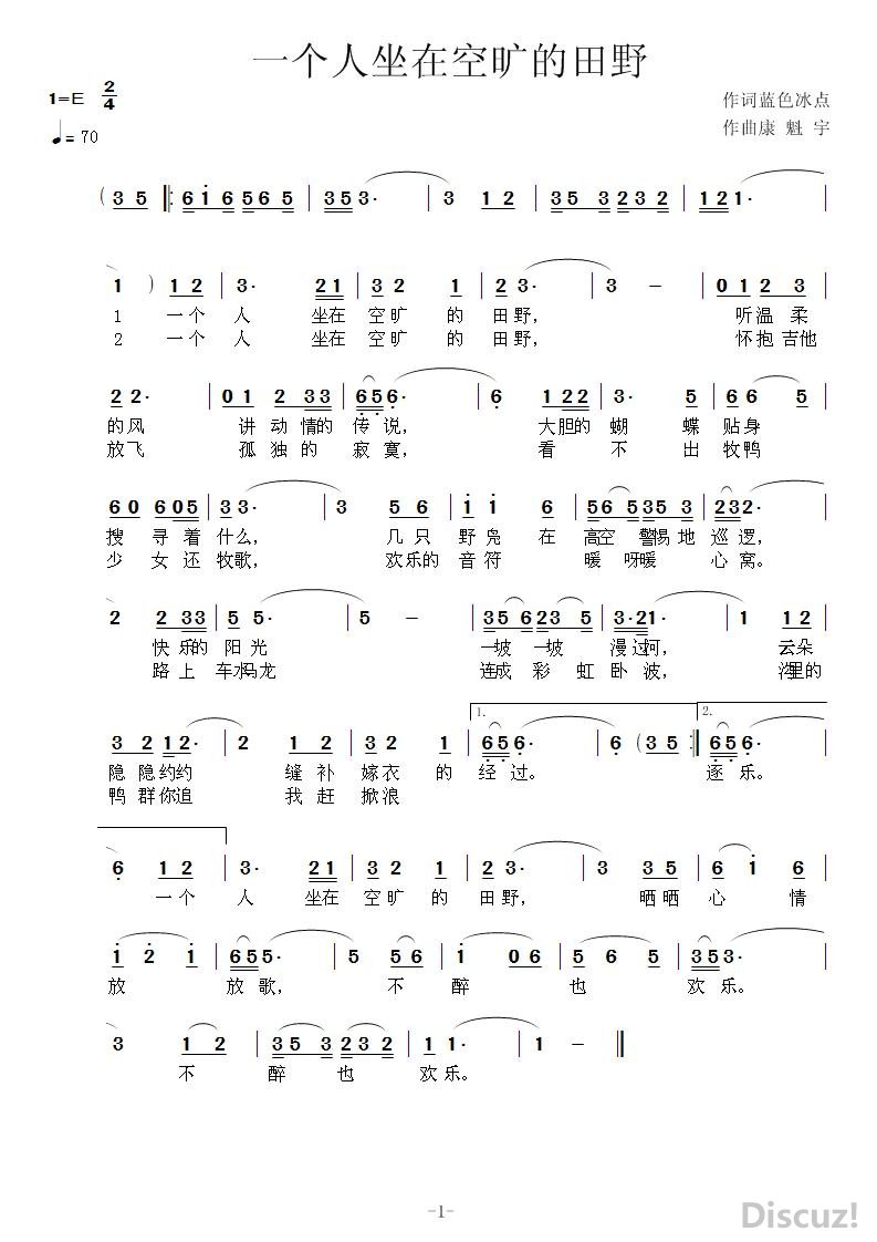 > 一个人坐在空旷的田野 作曲康魁宇