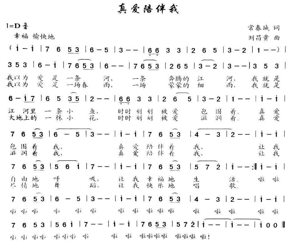 - [歌谱] 真爱陪伴我 带来欢乐的人
