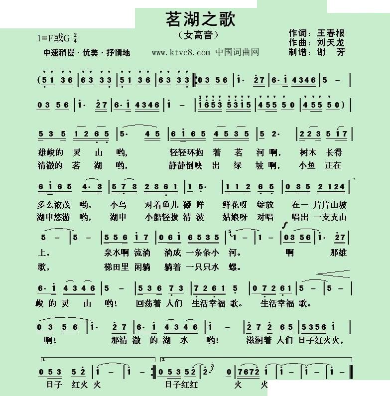 - [歌谱] 泊湖之歌