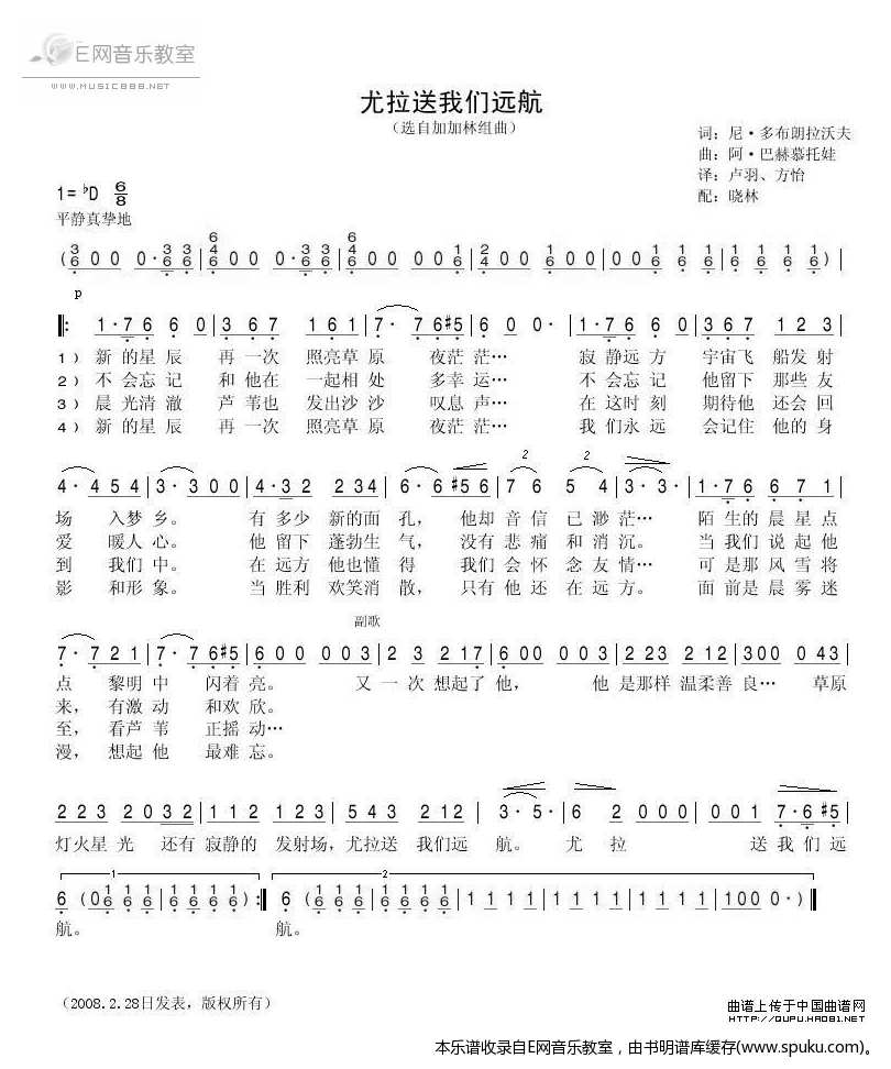 > 尤拉送我们远航 选自加加林组曲