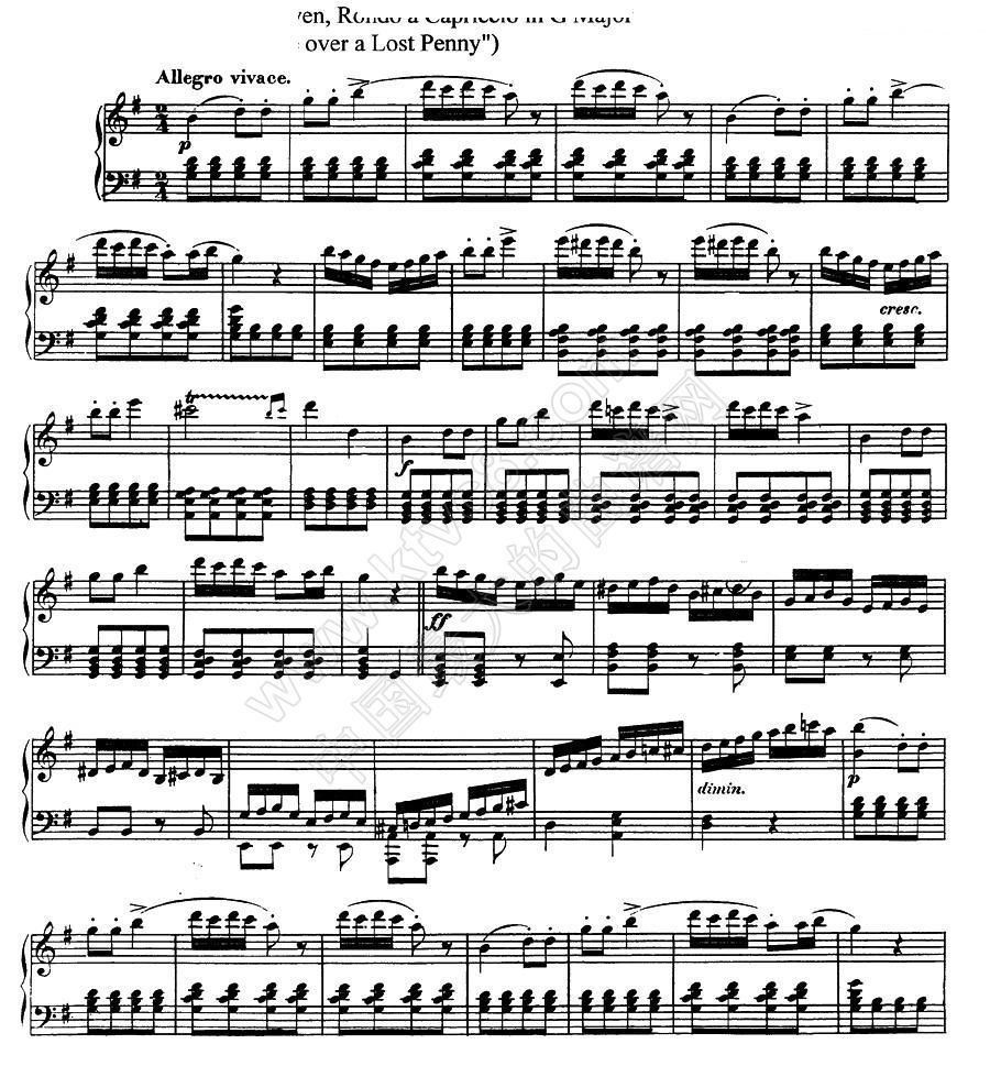 贝多芬 Rage Over The Lost Penny 丢失一分钱的愤怒 G调