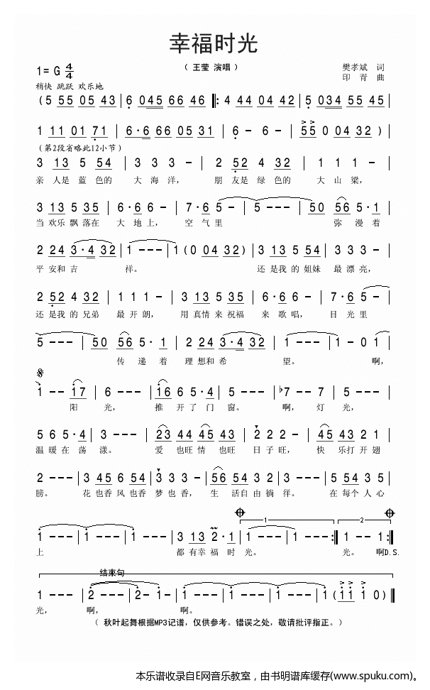 - [歌谱] 幸福时光 王莹