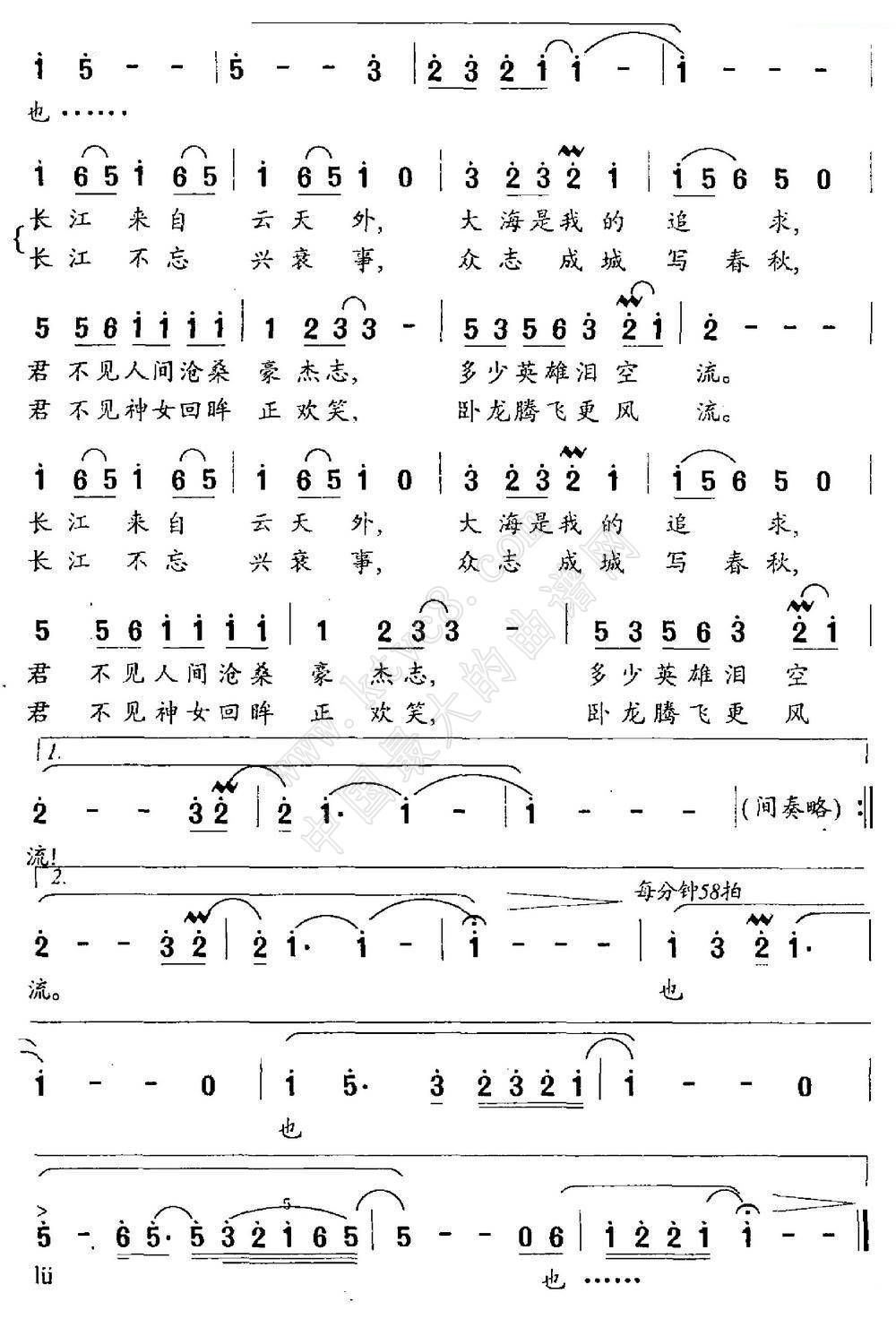 - [歌谱] 问长江 十集电视片 风卷红旗过大江 主题歌
