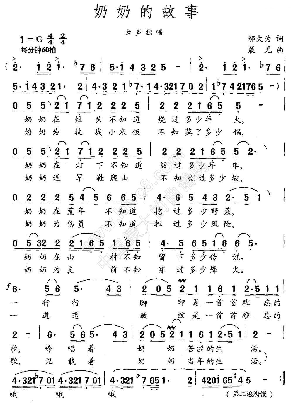 - [歌谱] 奶奶的故事