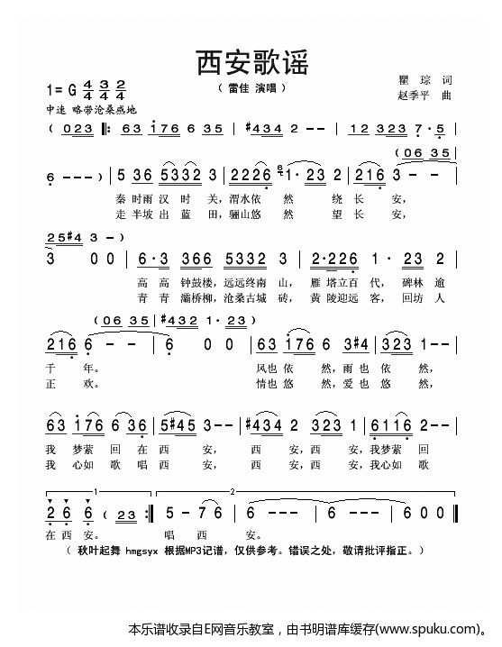 - [歌谱] 水乡歌谣 淮安市歌 雷佳