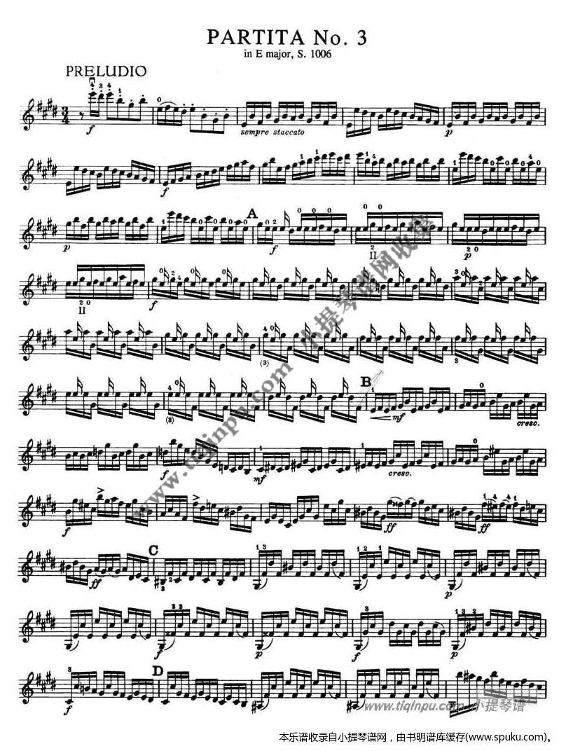 - [笛子谱,萨克斯谱,小提琴谱,长笛谱] 巴赫 六首小提琴无伴奏奏鸣曲及组曲 续1提琴