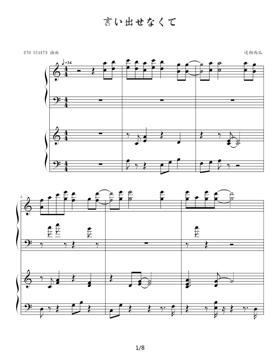 > 言い出せなくて 双钢琴