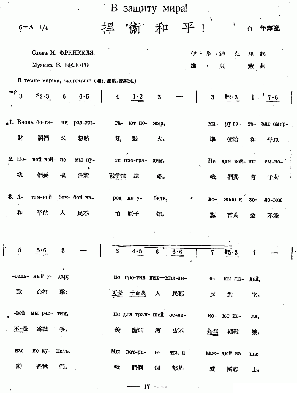 我们站在保卫和平的岗位上 中俄文对照 合唱