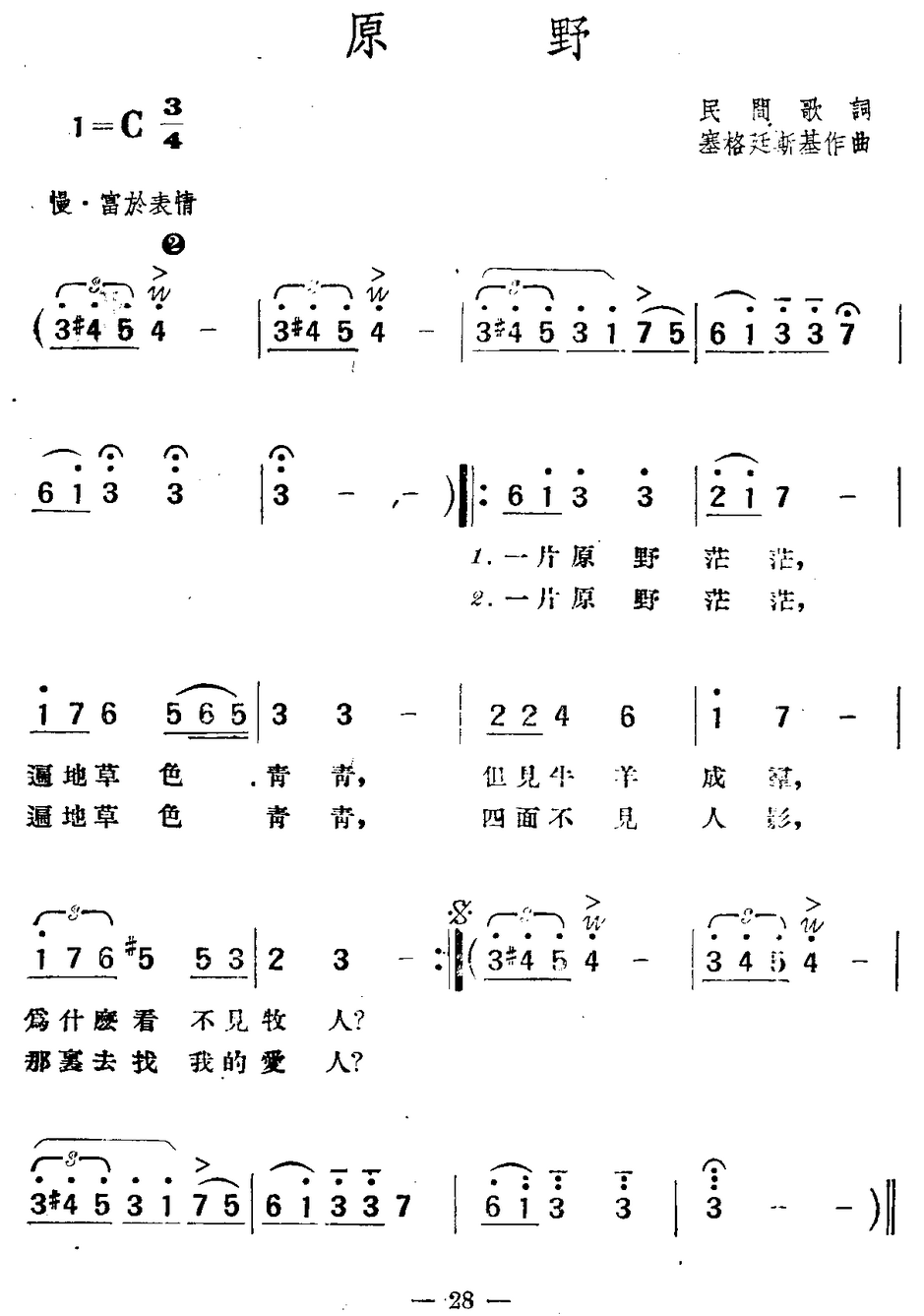 - [古筝谱,葫芦丝谱] 原野牧歌