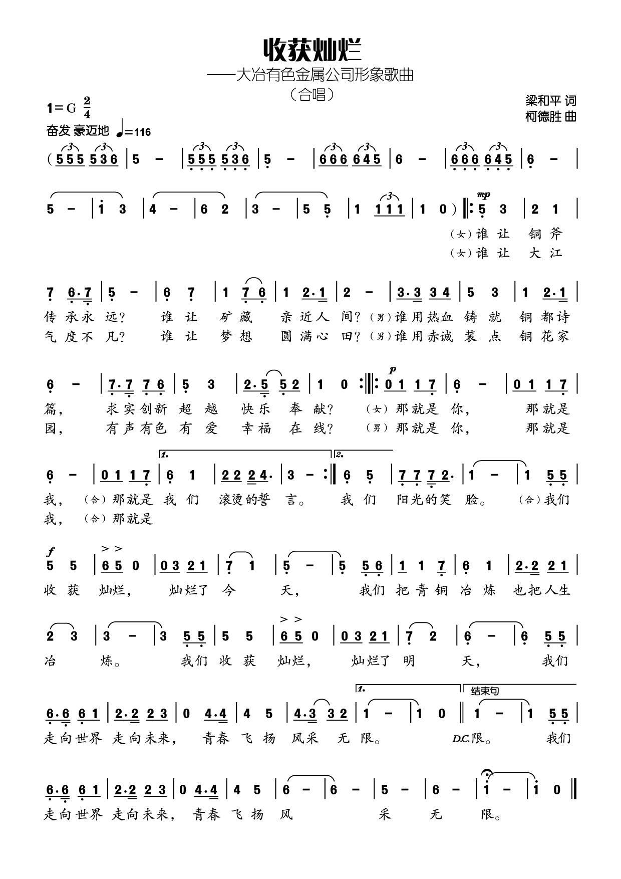 - [歌谱] 收获精彩 第五届农民运动会会歌