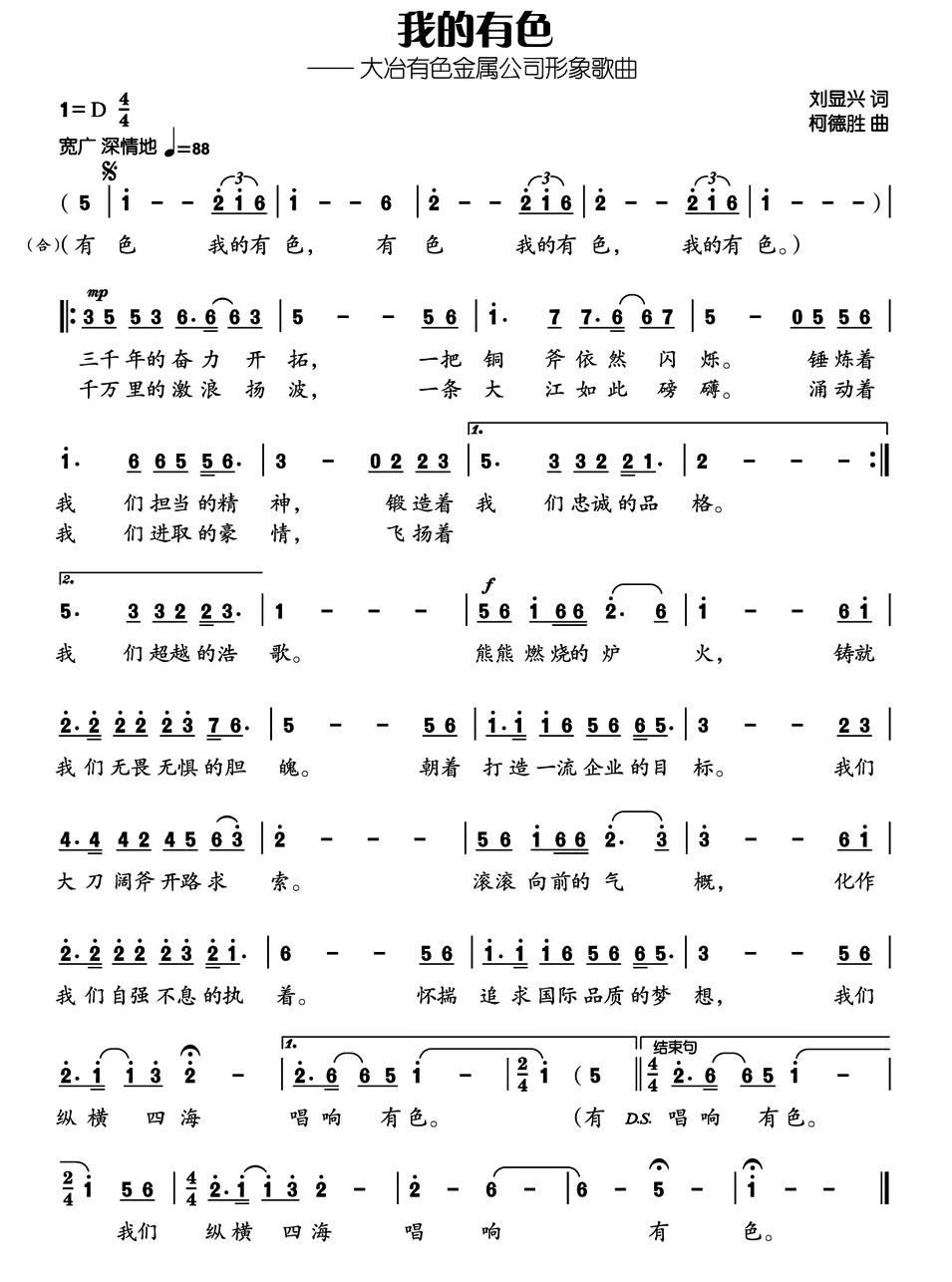 - [歌谱] 大冶有色我的歌