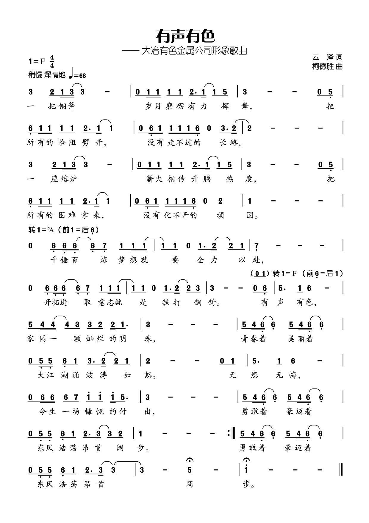 - [歌谱] 大冶有色之歌