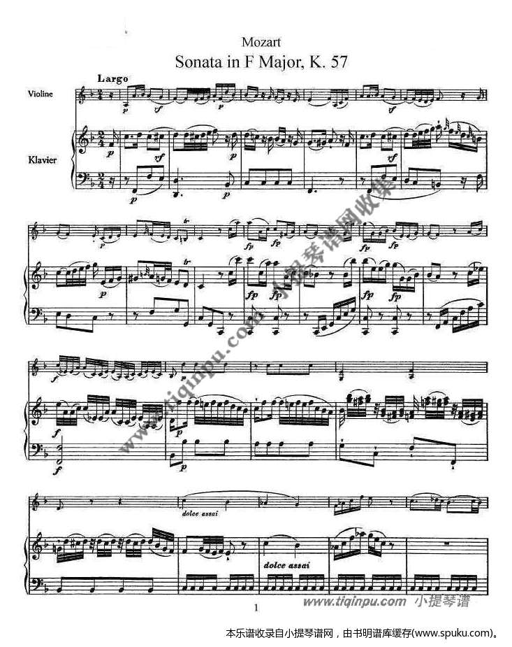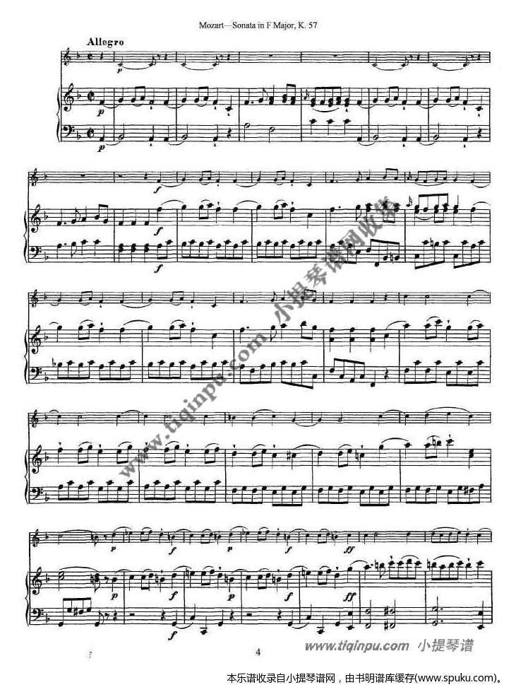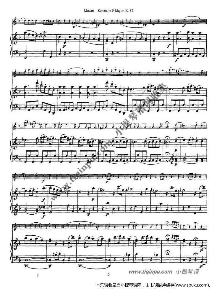 > 莫扎特小提琴奏鸣曲F大调 k 57 钢伴谱