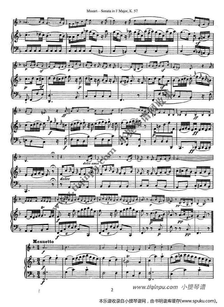 莫扎特小提琴奏鸣曲F大调 k 57 钢伴谱
