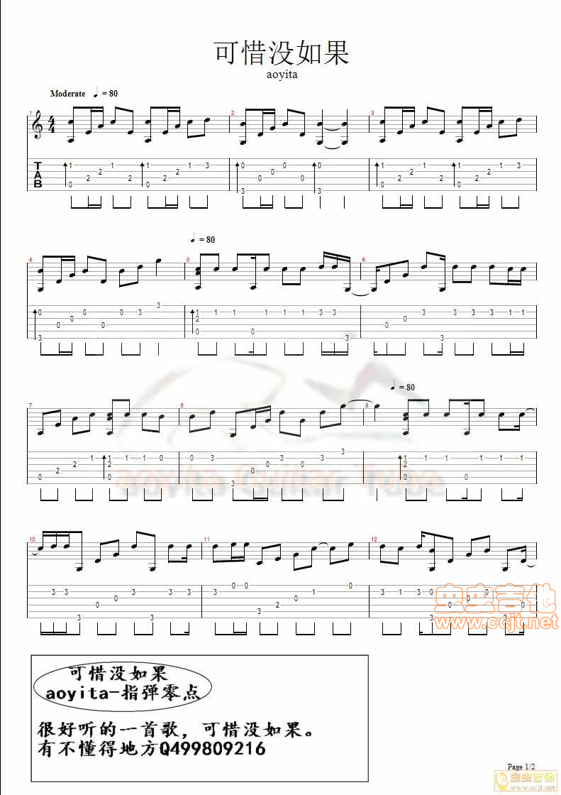 > 可惜没如果 指弹 aoyita编配