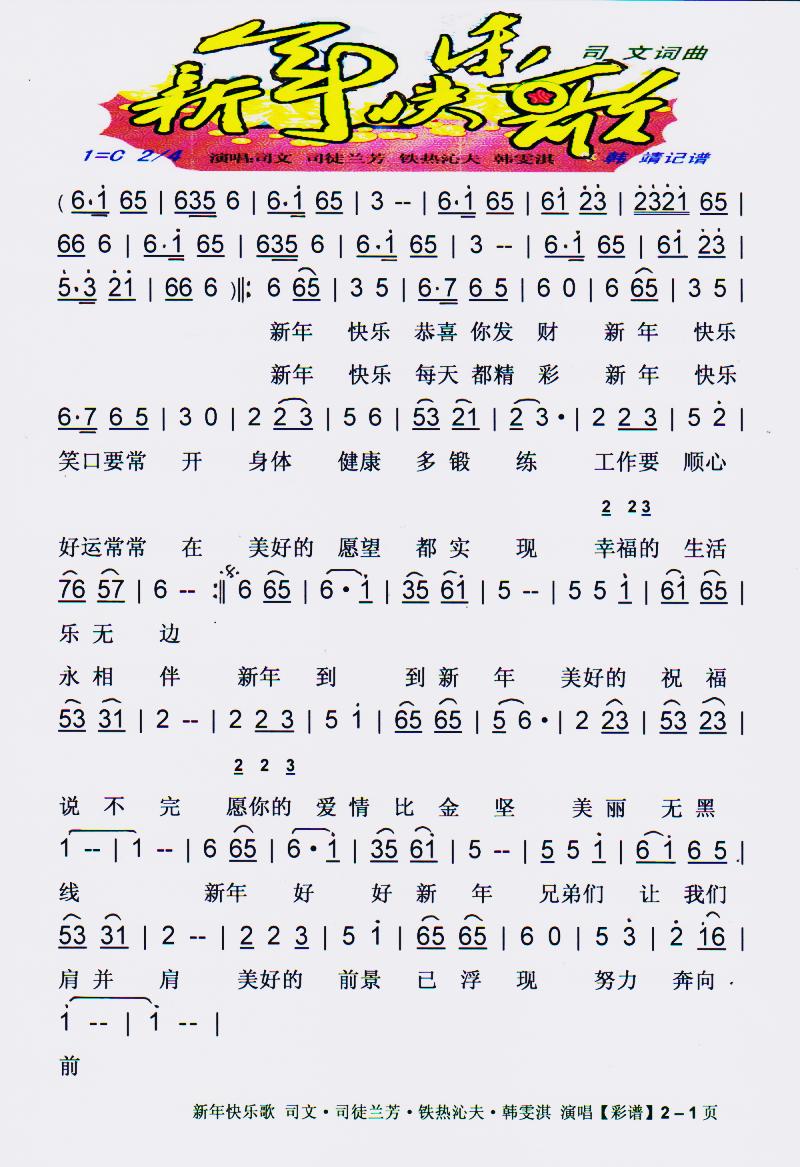 - [钢琴谱,歌谱,吉他谱] 新年快乐