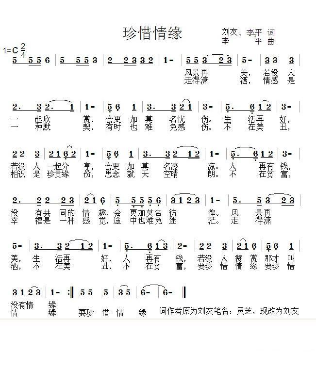 - [歌谱] 珍惜