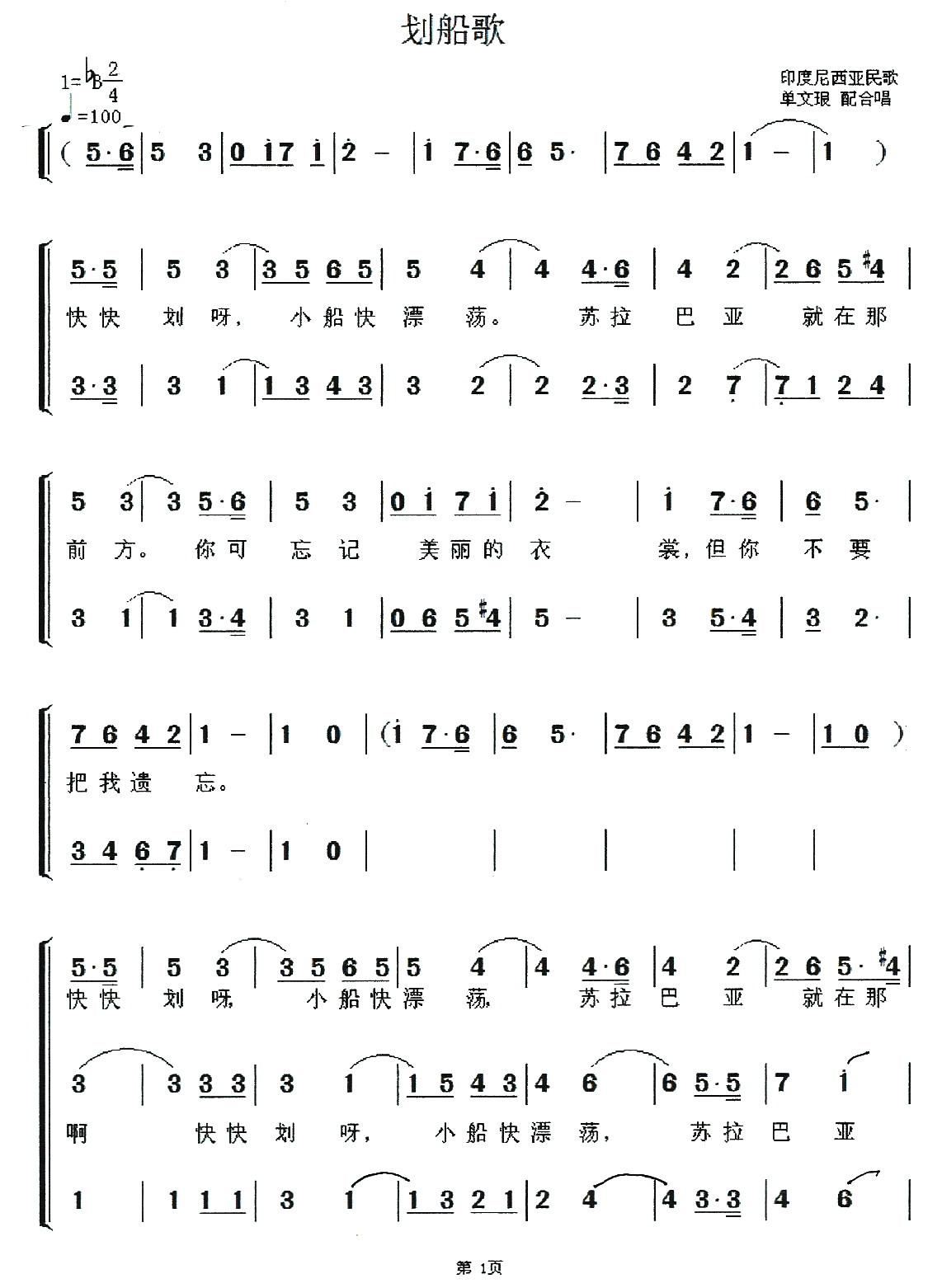 - [歌谱] 划船歌 印尼民歌