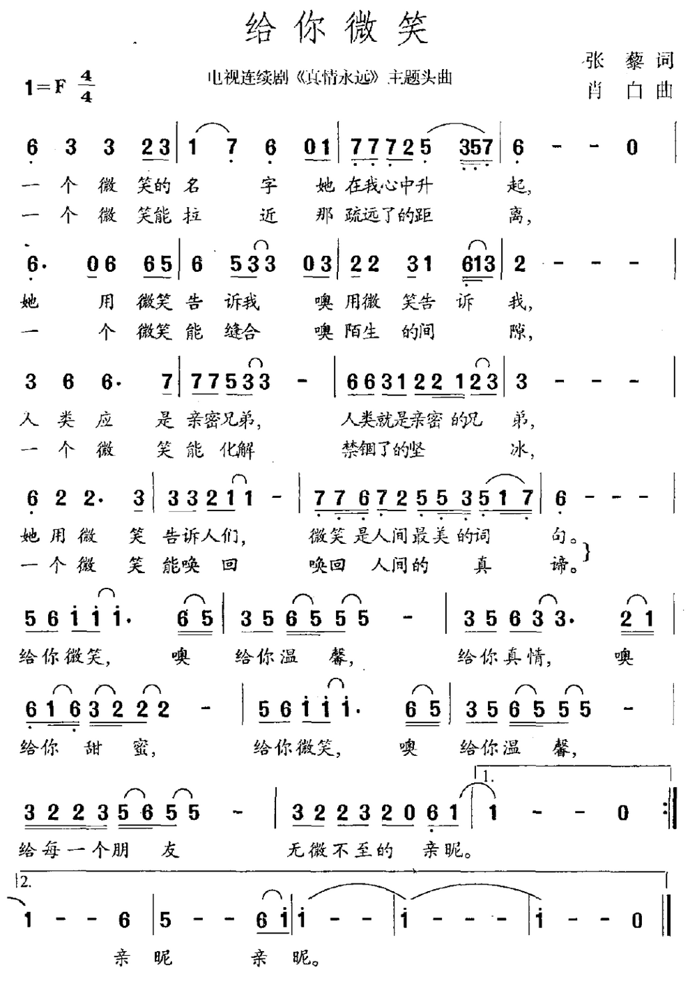 > 给你微笑 电视剧 真情永远 主题曲