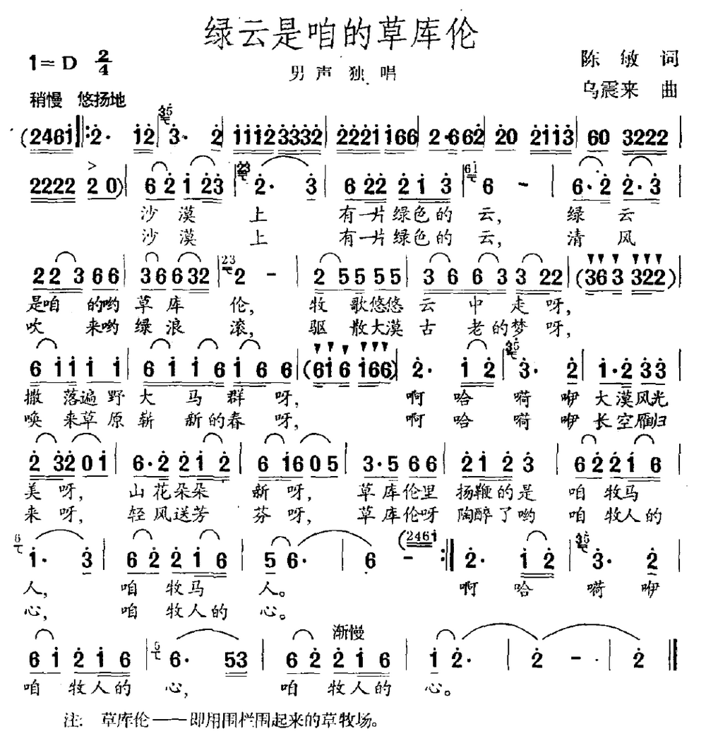 绿云是咱的草库伦 男声独唱