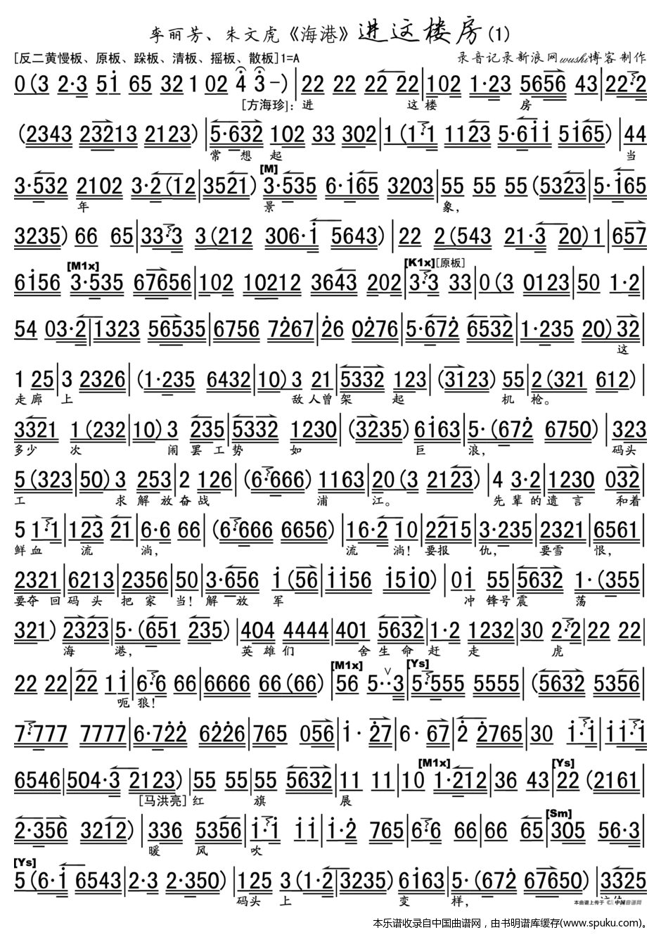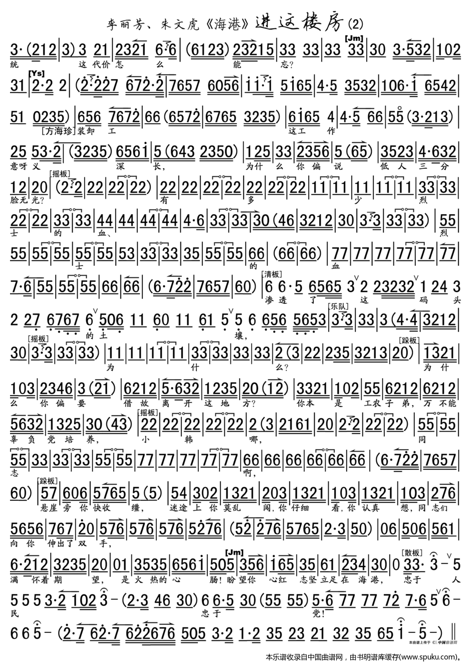 > 进这楼房常想起当年景象 海港 选段 琴谱 京剧戏谱