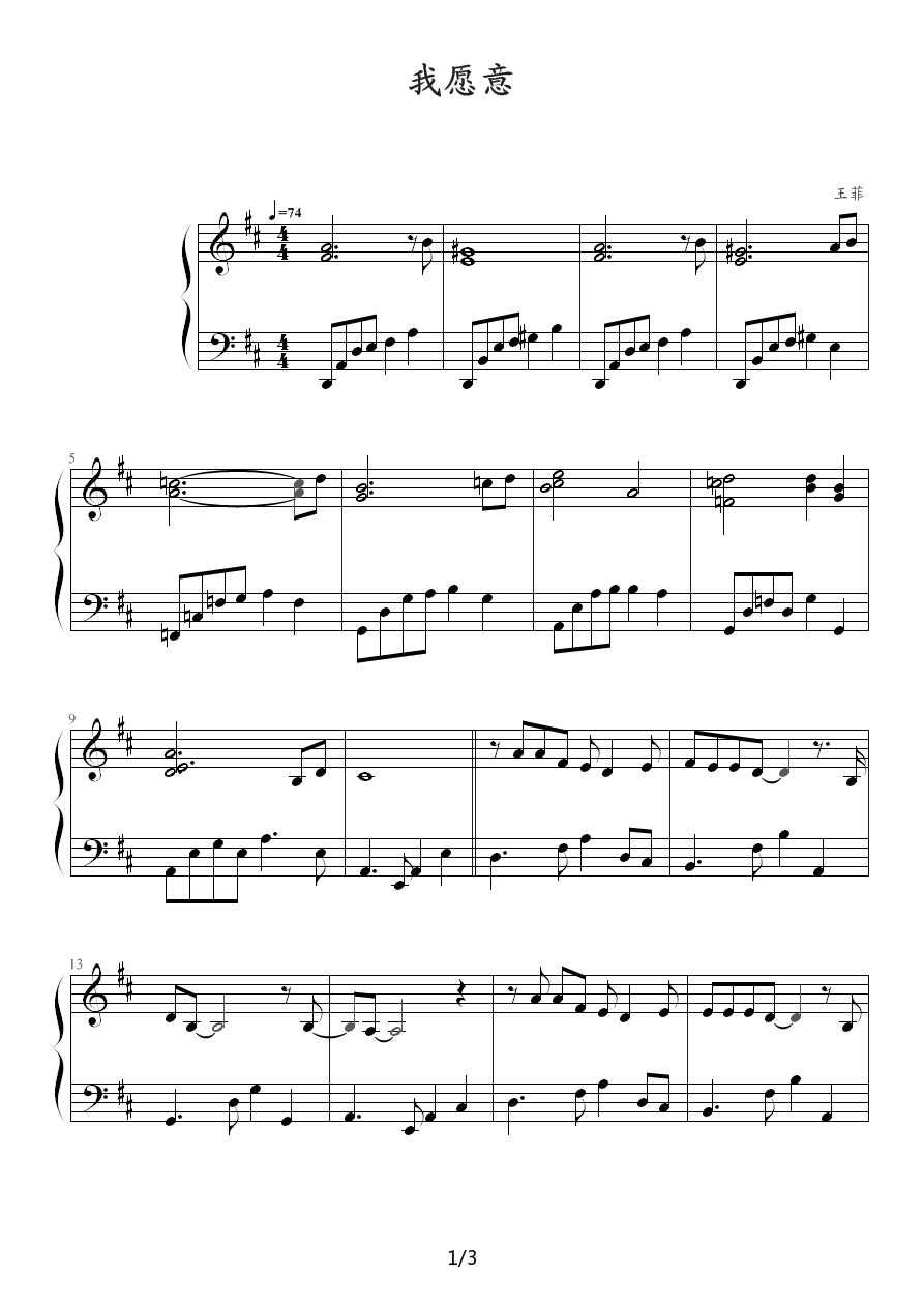 - [电子琴谱,钢琴谱,歌谱,吉他谱] 我愿意 王菲
