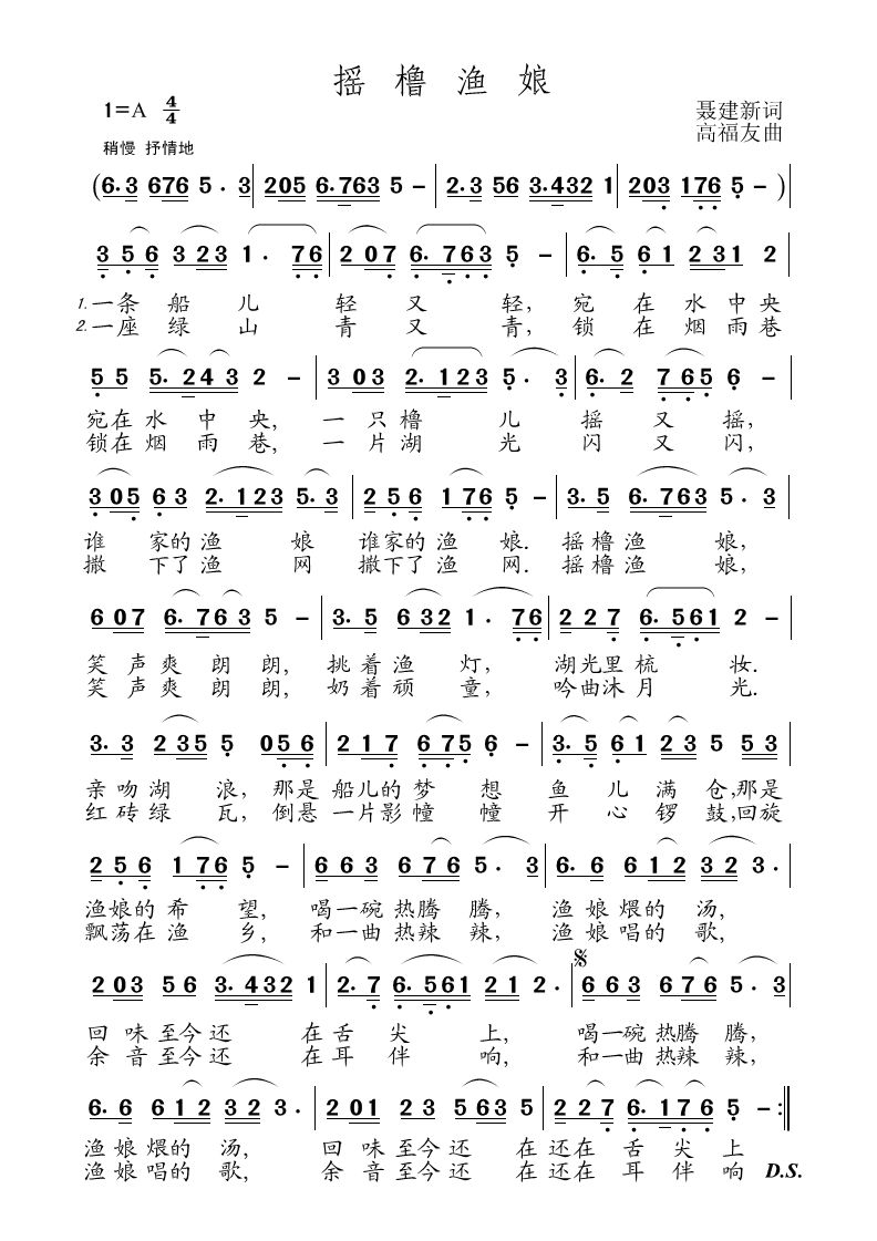 - [钢琴谱,歌谱] 摇橹 湖南民歌