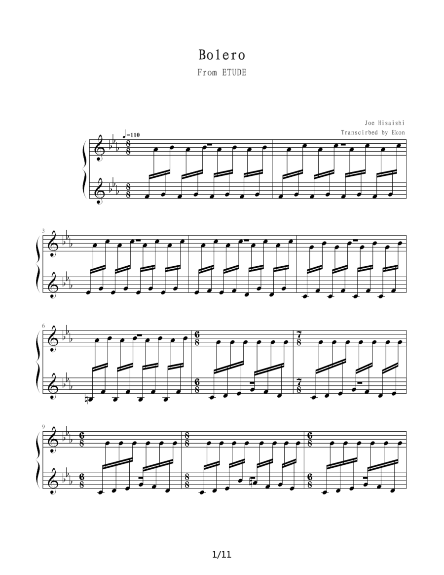 Bolero 久石让 钢琴独奏