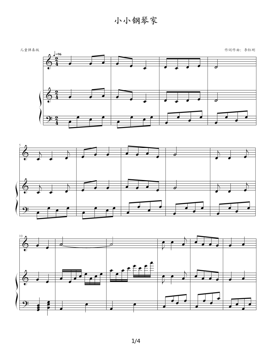 > 小小钢琴家 钢琴伴奏谱