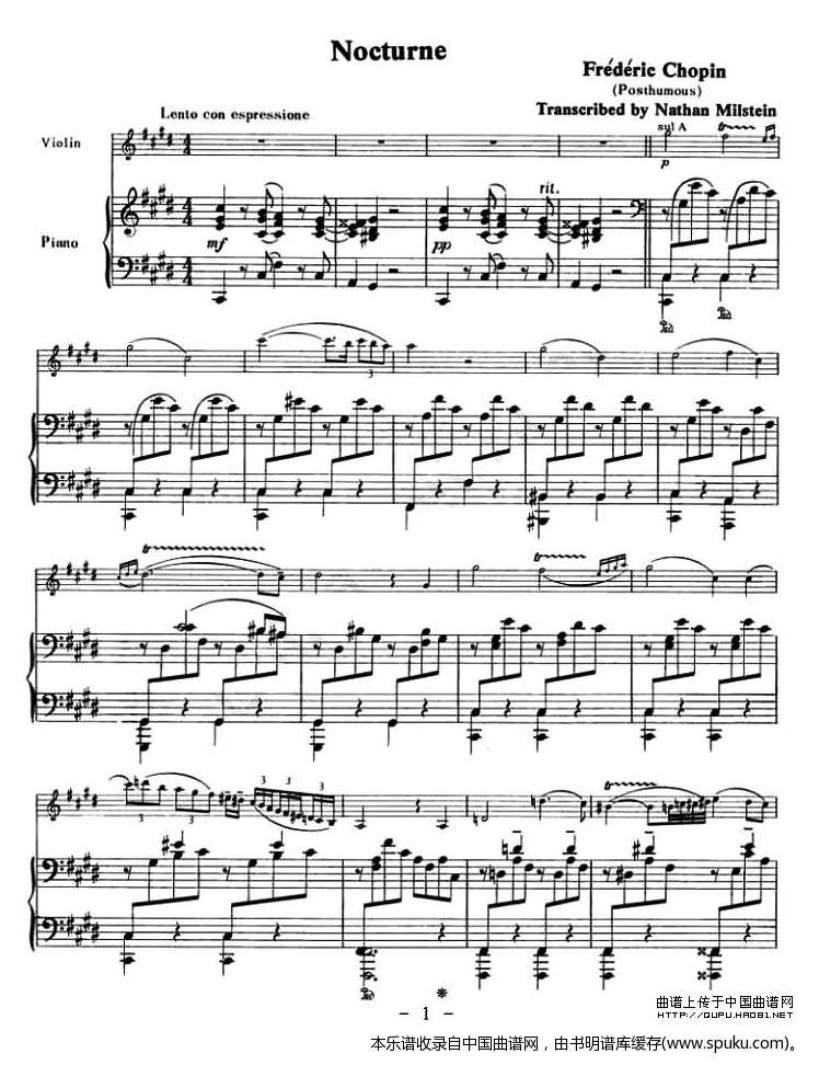 - [钢琴谱,小提琴谱] NOCTURNE 钢琴伴奏