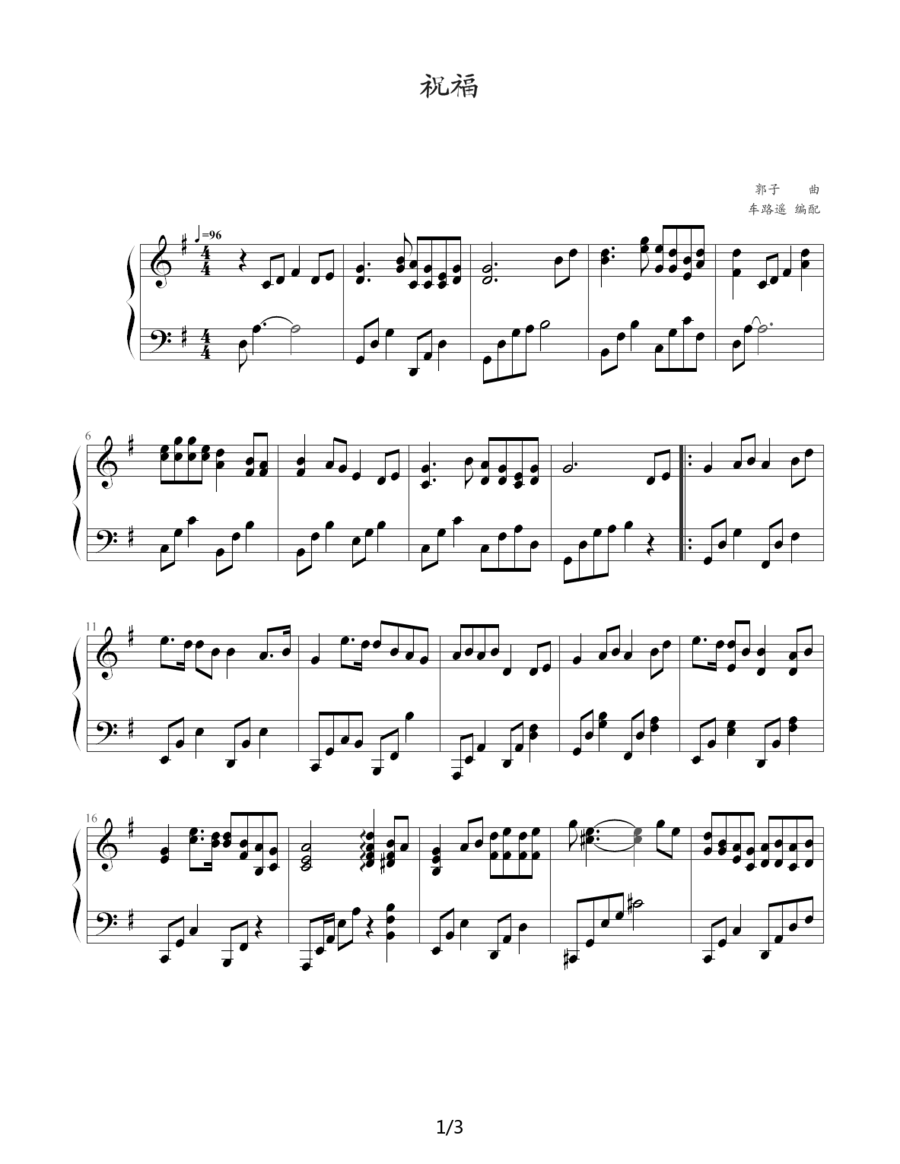 - [钢琴谱] 祝福