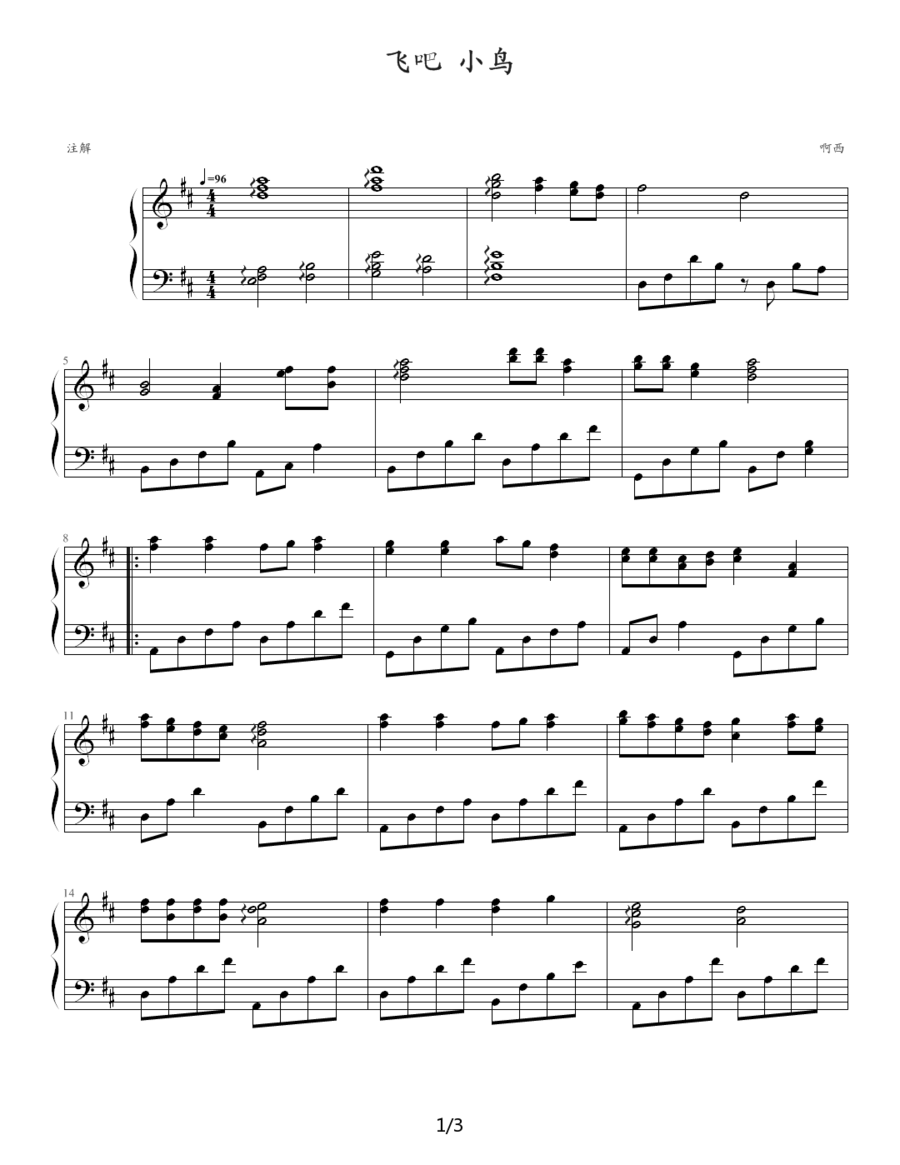 - [歌谱,手风琴谱] 飞吧 小鸟
