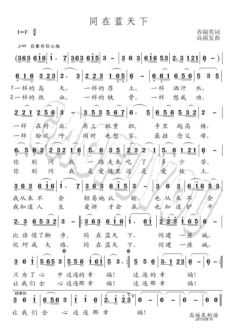 - [歌谱] 同在蓝天下
