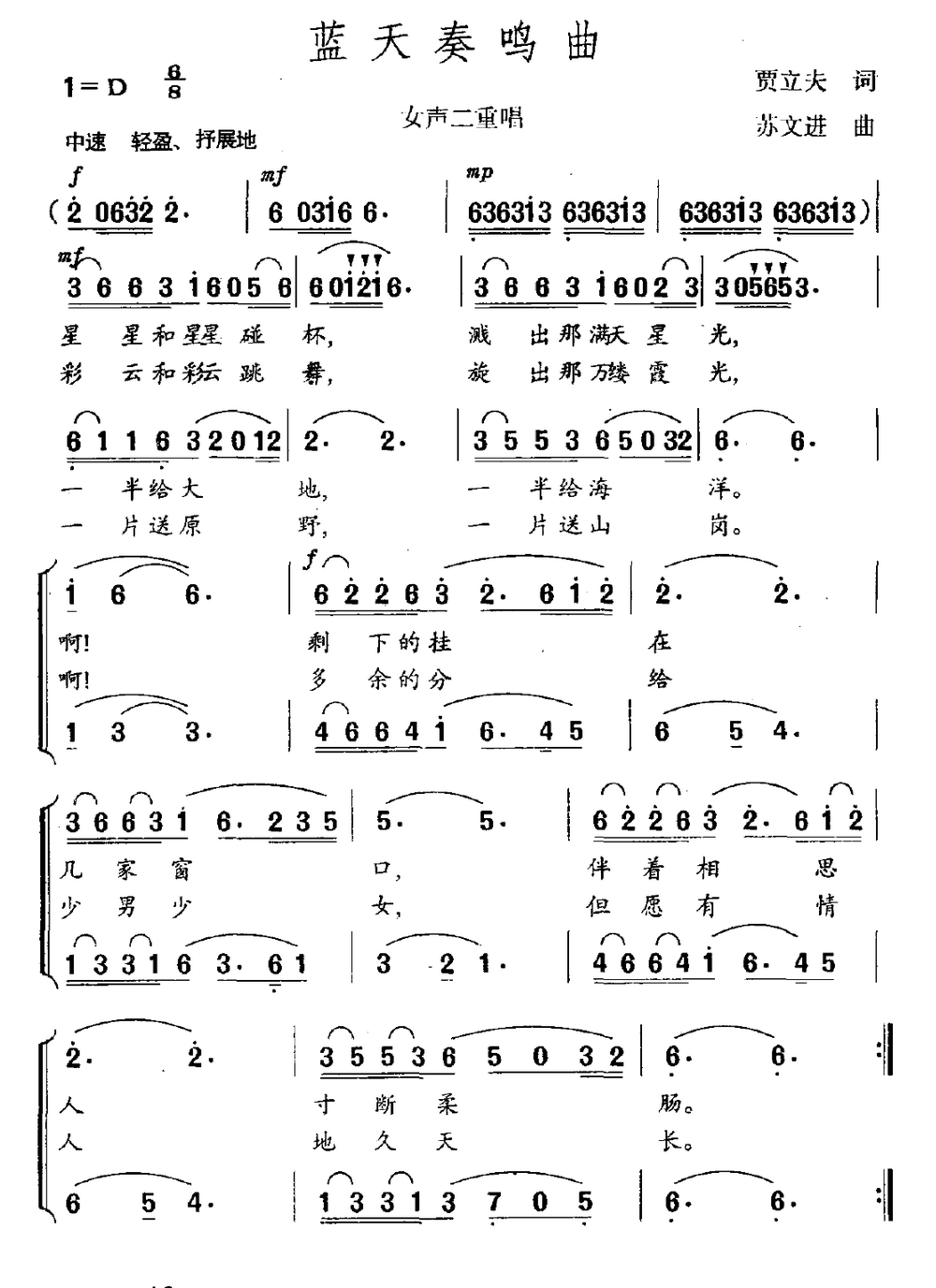 蓝天奏鸣曲 男女声二重唱