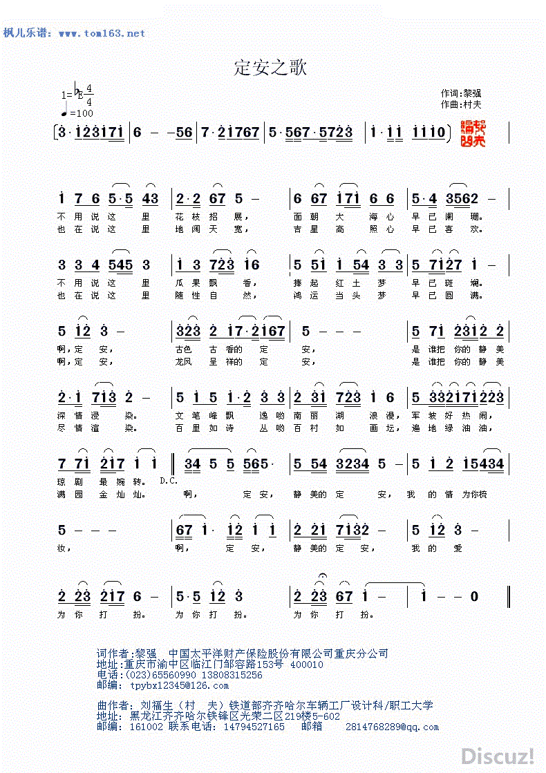 - [歌谱] 定安之恋 黄清林曲