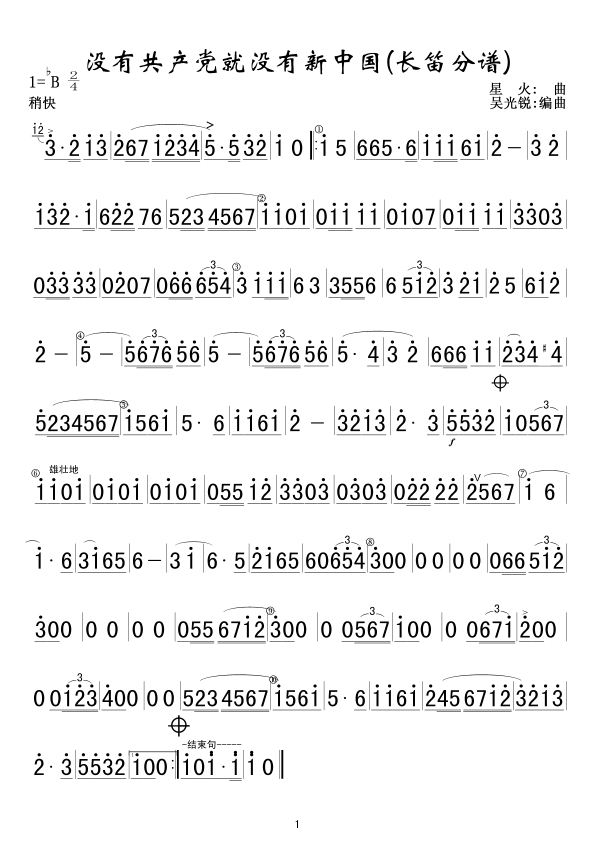 > 没有共产党就没有新中国 长笛 军乐 笛
