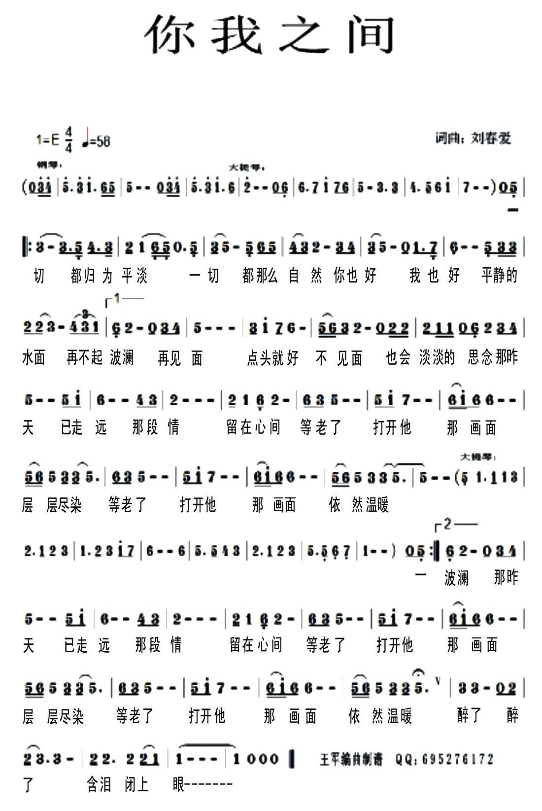 - [歌谱] 你我之间