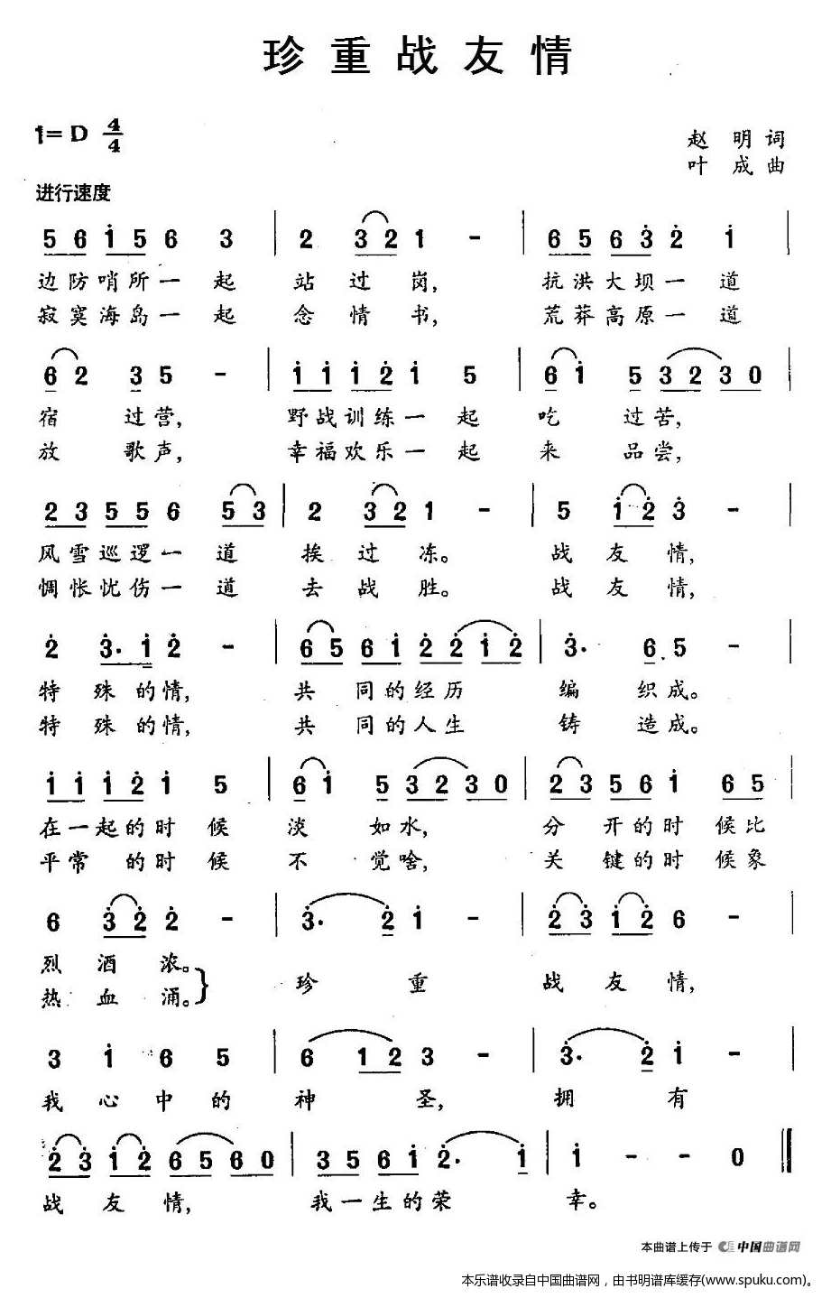 - [歌谱] 珍重 战友