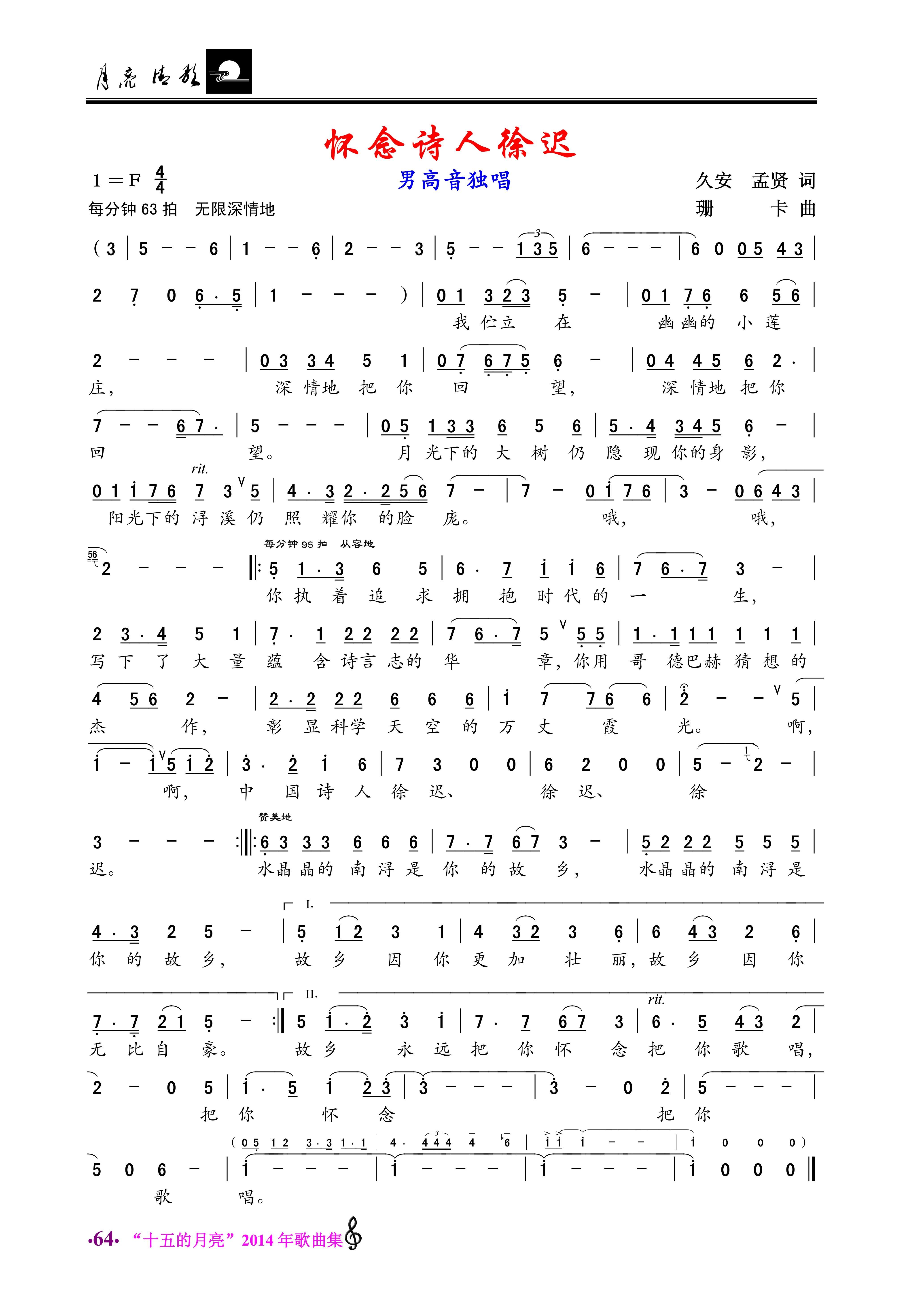 > 怀念诗人徐迟 男高音独唱