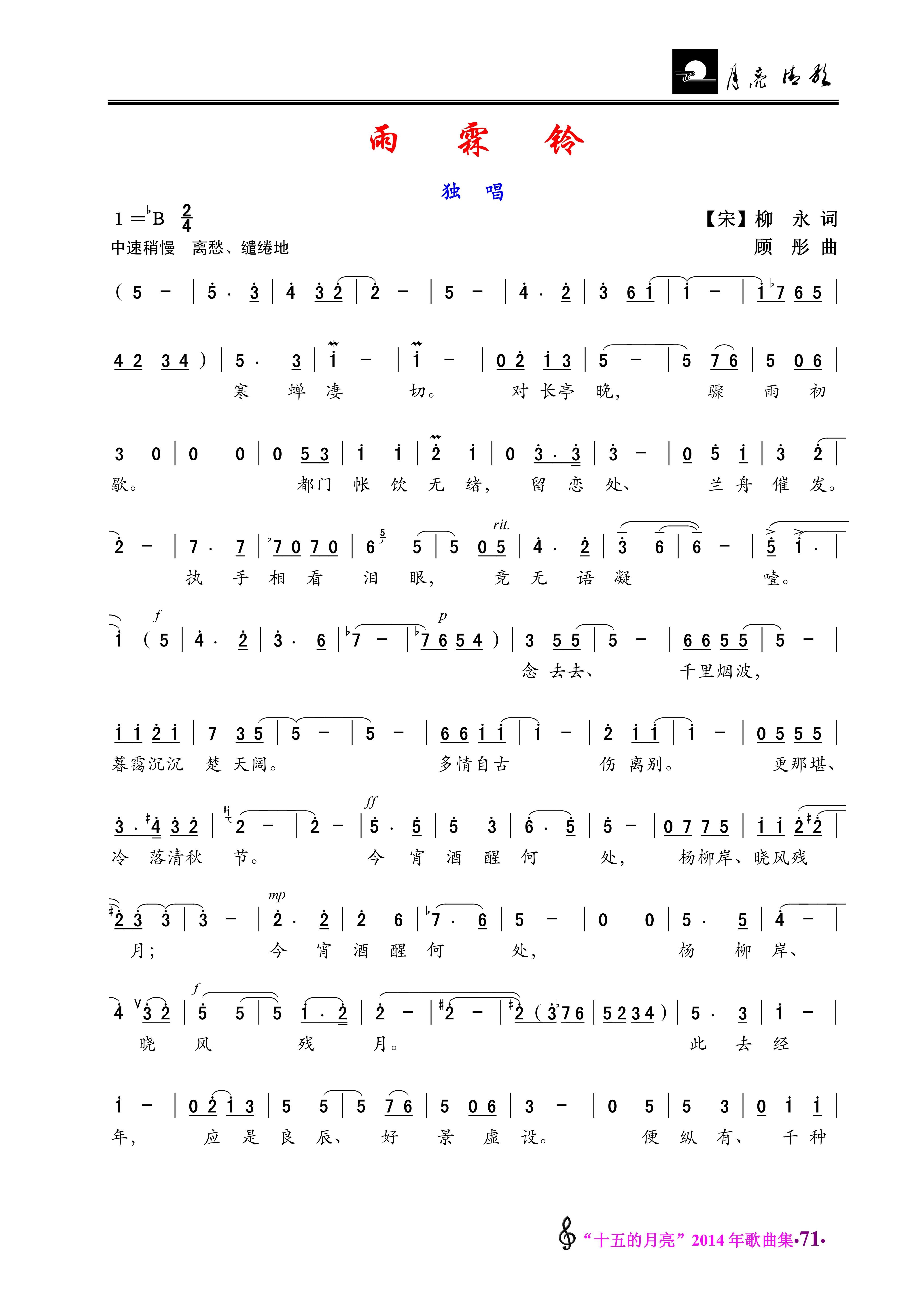 雨霖铃 女声独唱