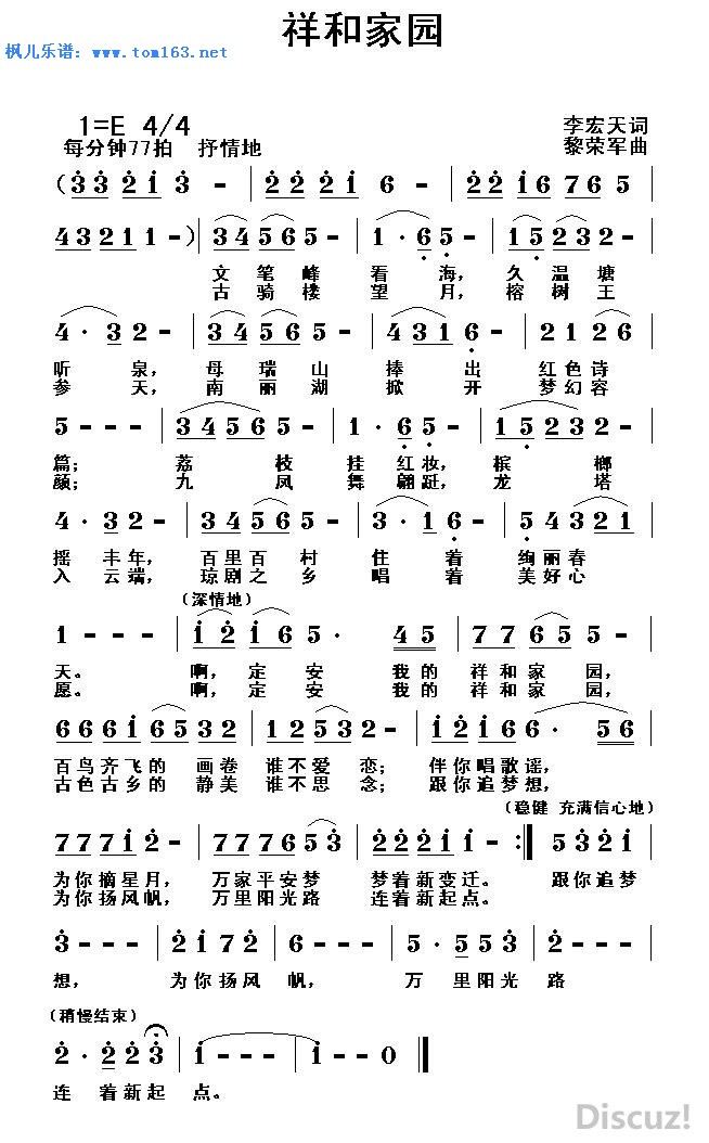 - [歌谱] 静美定安 祥和家园