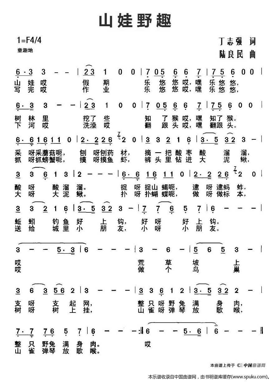 - [歌谱] 山娃娃喜爱小锄头