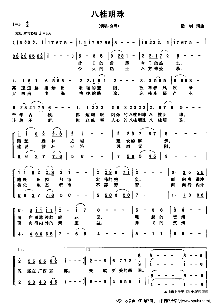 八桂明珠 合唱谱