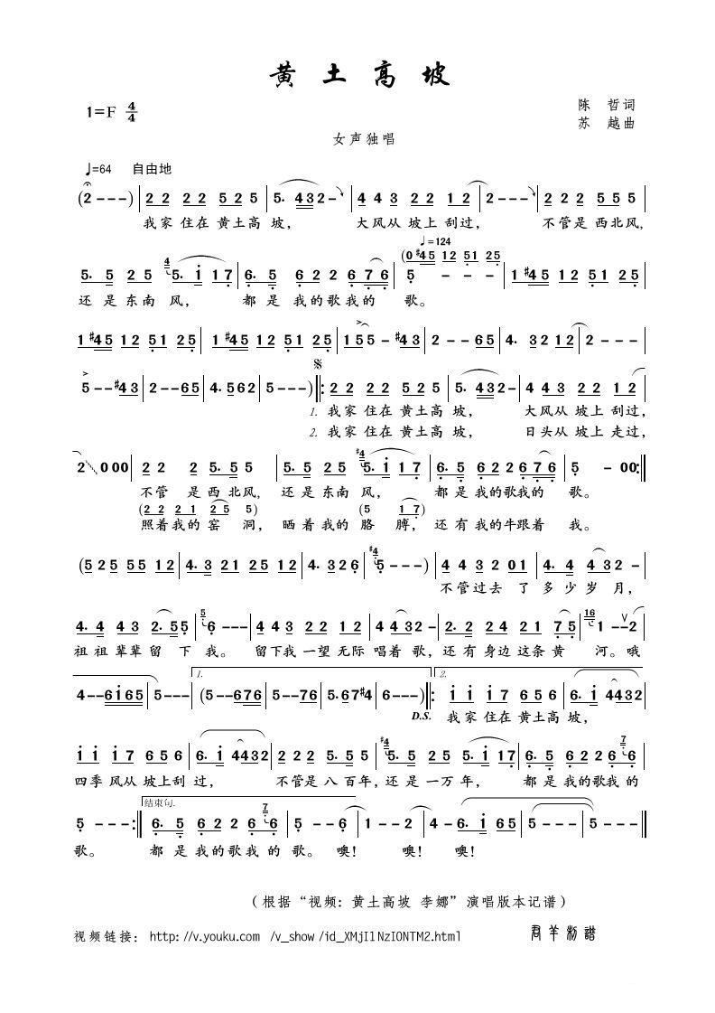 - [歌谱] 黄土高坡