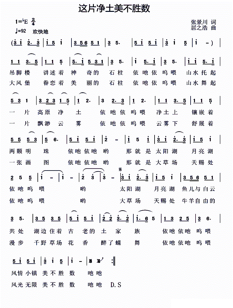 - [歌谱] 爱吧 这片净土 二声部合唱
