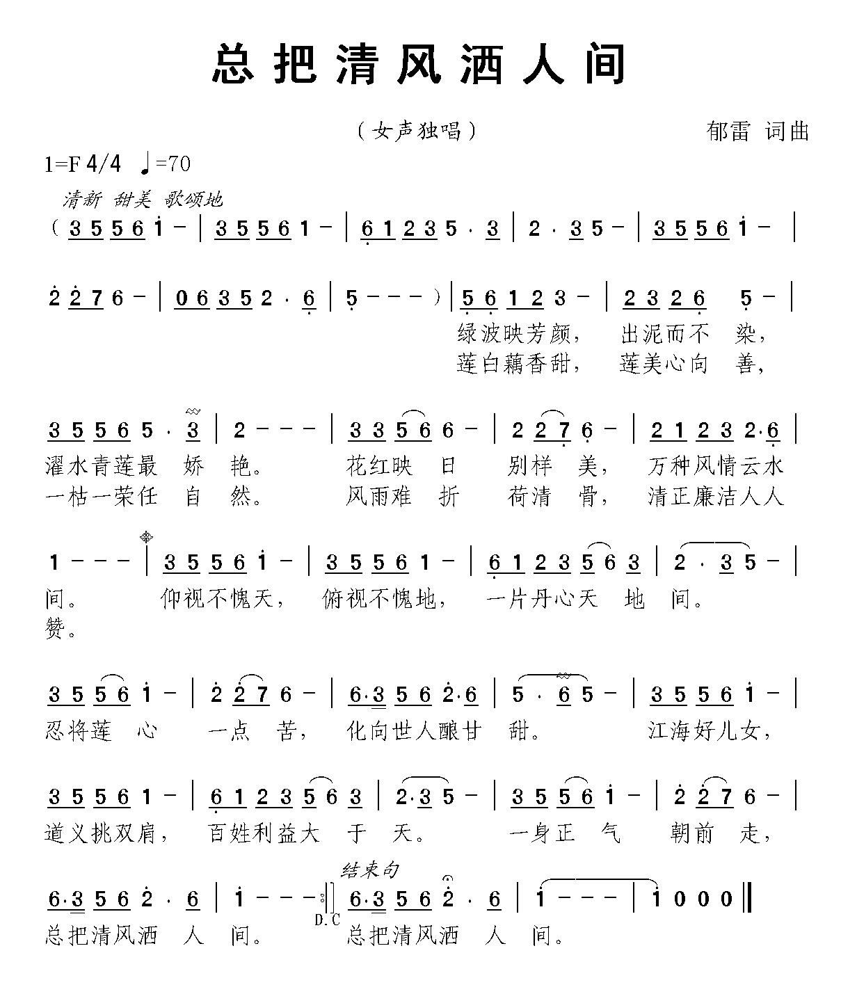 - [歌谱] 清风颂