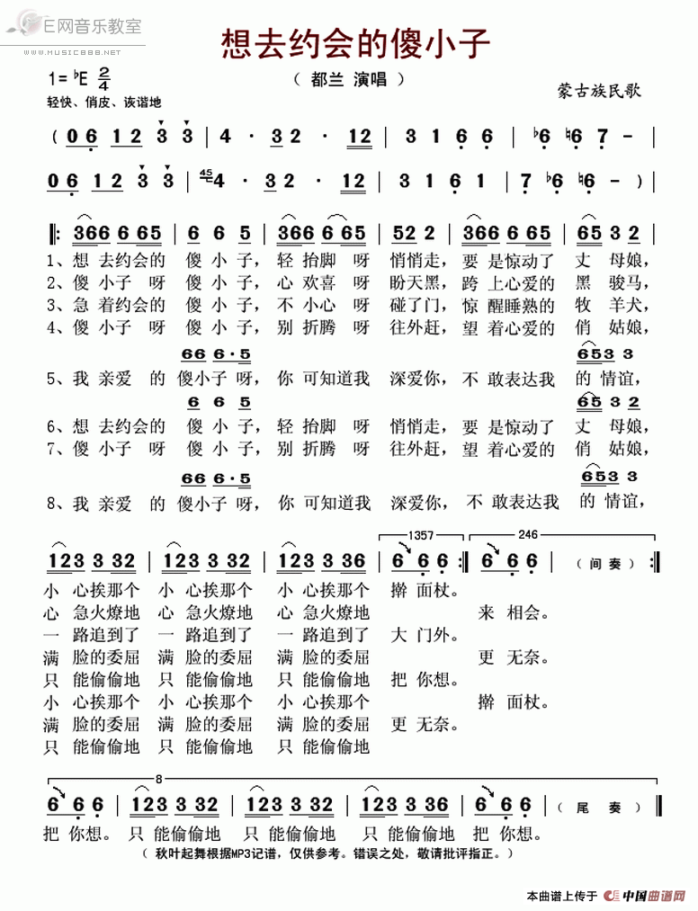 想去约会的傻小子 蒙古族民歌