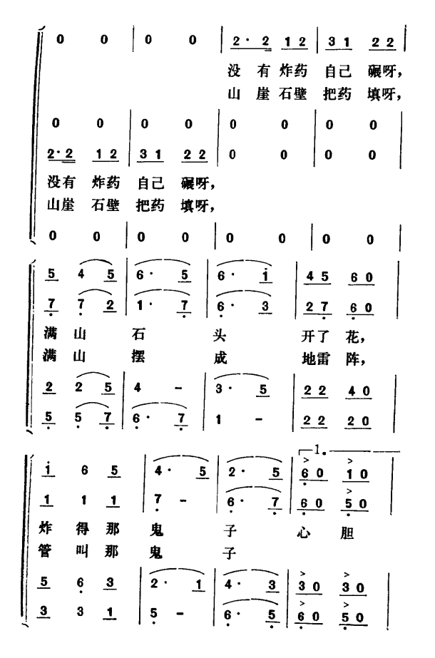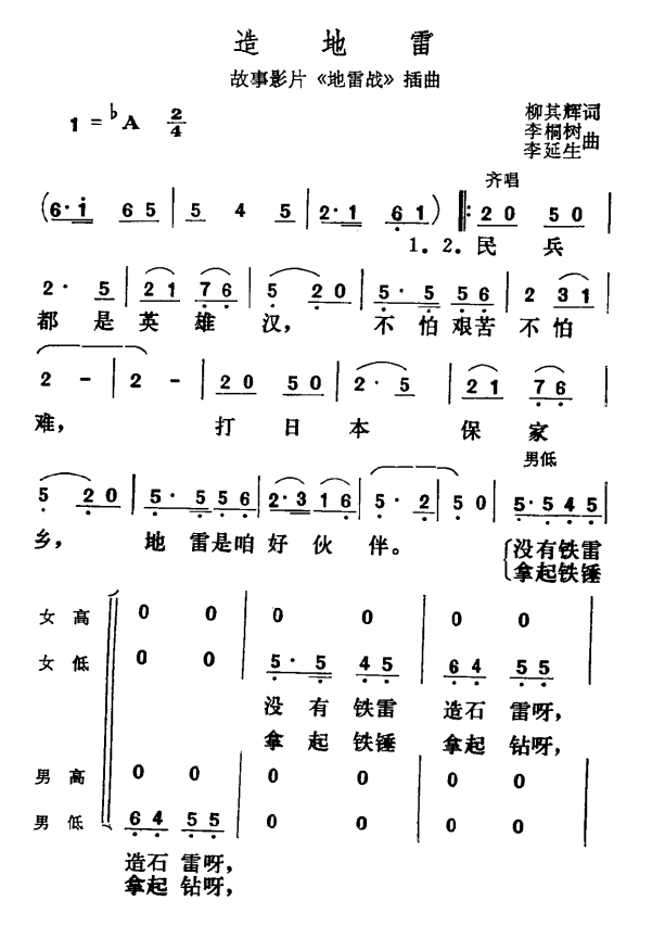 电影 地雷战 片尾曲 合唱歌曲主旋律谱